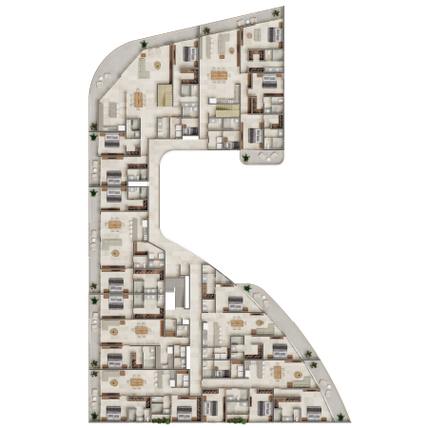 Residencial formado por 28 departamentos de 2 a 3 recámaras de 102.38 m2 hasta 450.13 m2